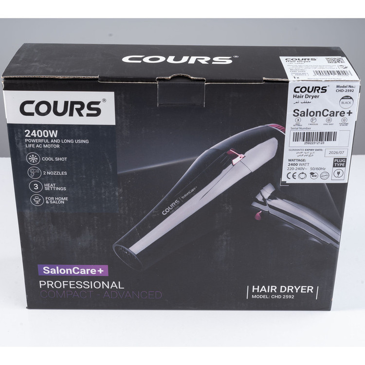 سشوار کورس مدل CHD-2592، انتخابی عالی برای مراقبت از موهای شماست. این سشوار با توان مصرفی 2400 وات، قادر به خشک کردن سریع و کارآمد موهای شما است. با قابلیت هوای سرد، این سشوار میتواند حرارت را در موهای شما تعادل بخشد و باعث حفظ سلامت و درخشندگی آنها شود. همچنین با سه حالت گرمایی و دو سرعت مختلف، شما میتوانید حرارت و سرعت خشک کردن را بر اساس نیاز موهای خود تنظیم کنید. این سشوار با موتور AC قدرتمند و دور موتور ماکزیمم 21000 دور بر دقیقه، عملکرد بسیار بالایی دارد و مناسب استفاده در خانه و سالن های زیبایی است. همچنین با دو عدد متمرکزکننده همراه، شما میتوانید جریان هوا را به نقاط دلخواه موهای خود هدایت کنید. برای ایمنی بیشتر، سشوار دارای سوراخهای ریز در ورودی سشوار است که از درگیر شدن مو حین استفاده جلوگیری میکند. همچنین با حلقه آویز، شما میتوانید سشوار را به راحتی در مکان دلخواه نگهداری کنید. با سشوار کورس مدل CHD-2592، تجربهی مراقبت از موی خود را به یک سطح جدید ببرید.