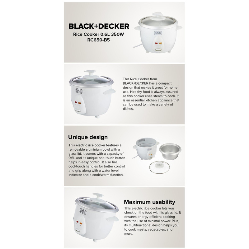 سایر توضیحات: پلوپز 350 وات، ظرفیت 0.6 لیتر، کاسه آلومینیومی قابل جابجایی، یک درب شیشه ای با دسته های لمسی خنک، عملکرد پخت و پز و گرم کردن خودکار با چراغ های نشانگر، نشانگر سطح آب، ابعاد 21x21x17.5