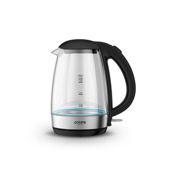 کتری برقی کورس مدل CEK1734 با توان 2200 وات و ظرفیت 1.7 لیتر مجهز به المنت از جنس مس می باشد این کتری برقی دارای نمایشگر ال ای دی است این دستگاه قابلیت خاموش شدن خودکار در صورت کمبود آب را دراد