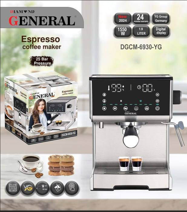 با اسپرسوساز جنرال مدل DGCM-6930-YG، تجربهای لذتبخش از نوشیدن قهوه حرفهای در خانه یا محل کار خواهید داشت. این دستگاه با ترکیب قدرت، زیبایی و کارایی، انتخابی بینقص برای دوستداران قهوه اصیل است.